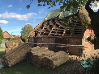 Im Frühjahr 2018 beschädigte ein heftiger Sturm die Westseite des Reetdaches schwer. Dadurch war es notwendig geworden, die Westseite komplett neu einzudecken, was durch die Firma Steen geschah.