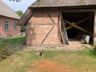 Solche Ensembles von Schulgebäude und Scheune waren im ganzen Land verbreitet und prägten das Bild der holsteinischen Landschaft. Und eben weil diese Form so gebräuchlich war, wurde sie von der Nachwelt wenig geschätzt und die Scheunen verfielen und verschwanden mit der Zeit. Nach Auskunft des Landesamtes für Denkmalspflege ist unsere Scheune tatsächlich eins der wenigen, wenn nicht gar das einzige Gebäude seiner Art, das den Wandel überlebt hat und deswegen habe wir sie in unser Herz geschlossen. Wir möchten sie gerne wieder in den Zustand bringen, in dem sie sich bei ihrer Erbauung befand. Dafür ist detektivische Arbeit nötig, denn es gibt keine Dokumentation über die Erbauung und die Veränderungen des Gebäudes. In den ca. 200 Jahren ihres Bestehens hat sich sicherlich viel geändert.